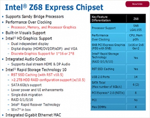 Intel, nieoficjalnie, już 8 maja zaprezentuje chipset Z68, a wraz z nim pojawią się nowe płyty główne. Chipset ten pozwala na podkręcanie procesorów Sandy Bridge z dopiskiem K i obsługę zintegrowanej w procesorze karty graficznej.