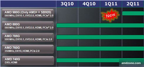 Dotarliśmy do planów AMD związanych z chipsetami z serii 900. Można z nich wywnioskować, że pierwsze płyty główne z tymi chipsetami pojawią się na początku drugiego kwartału 2011 roku. Co ciekawe, jeden z chipsetów będzie zintegrowany z układem graficznym.