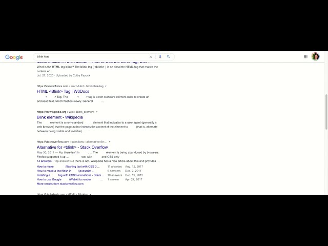 Podczas formatowania treści w HTML, możemy dodać znacznik blink. Ma on za zadanie wprowadzić do strony migający tekst. Jeżeli zapytacie „wujka” Google o to wpisując w wyszukiwarkę „Blink HTML”, to zobaczycie dosłownie jak to działa. Otóż każda fraza na stronie „Blink HTML” będzie pięknie do nas mrugać. Także nie polecamy stosować tego osobom, których drażnią migoczące elementy.