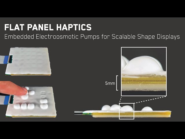 Flat Panel Haptics to technologiczne rozwiązanie, które można zintegrować z panelem OLED, aby – na życzenie – tworzyć wypukłości. Ustalone sekcje ekranu można wypełnić płynem, aby utworzyć swego rodzaju przyciski na powierzchni ekranu. Dzięki temu wyskakująca na wyświetlaczu klawiatura mogłaby zyskać trzeci wymiar, podobnie jak przyciski sterujące w odtwarzaczu czy w grach.