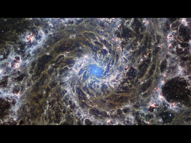 Teleskop Webba jest niczym mikroskop i rentgen. On może dopełniać obrazu całości, ale jego szczegółowość potrafi być myląca. Najbardziej trafnym obrazem galaktyki M74 jest kompozyt, będący kompilacją danych uzyskanych przez Teleskop Hubble’a i Teleskop Webba.