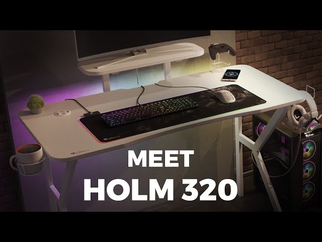 HOLM 320 RGB ma stanowić idealną propozycję dla osób, które szukają połączenia stylu i funkcjonalności. Producent zastosował metalową konstrukcję i blat z płyty MDF o wymiarach 120 x 60 cm, który pokryto białą, karbonową okleiną. Dodatkowo wygospodarowano tutaj półkę na monitor, która pozwala wybrać optymalne ustawienie ekranu, a przy okazji oszczędza przestrzeń roboczą.