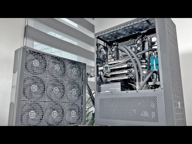 Do chłodzenia procesora i kart graficznych wykorzystano chłodzenie wodne z potężną chłodnicą 420 x 420 wyprowadzoną na zewnątrz obudowy.