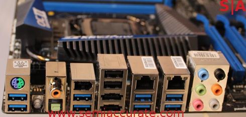 Dla kart rozszerzeń udostępniono aż osiem gniazd PCI-Express x16 (są to prawdopodobnie cztery x16 oraz cztery x8). Oznacza to, że płyta ta będzie idealna do tworzenia platform przeznaczonych do bicia rekordów wydajności. Dodatkowo, oprócz standardowego chipsetu Intel P67, na laminacie umieszczono układ Lucid Hydra, który pozwoli na łączenie różnych kombinacji kart graficznych (w tym grafik Radeon i GeForce).