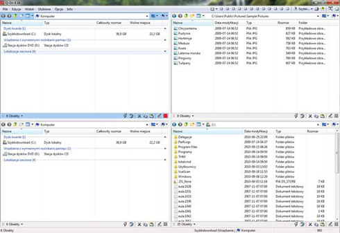 Dzięki technice Quadro-View (widok w cztech oknach) dostęp do plików jest niezwykle szybki. Rozmiar każdego okna, podobnie jak rozmieszczenie i widok, można dowolnie regulować. Dla ułatwienia pracy rozszerzeniom nadano inne kolory.