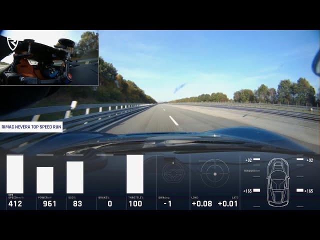 Choć elektryczny Rimac Nevera trafił już do pierwszych klientów (jego dostawy są stale realizowane), to osiągnięcie rekordowej prędkości 412 km/h jest dostępne wyłącznie po wyłączeniu ogranicznika prędkości.