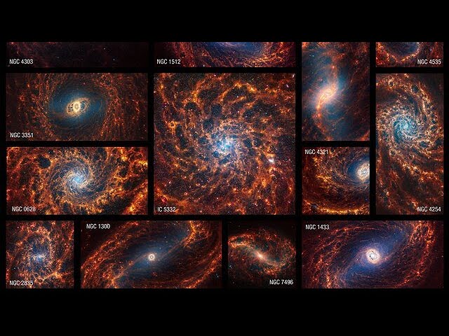 Operatorzy teleskopu Webb w ramach programu PHANGS (ang. Physics at High Angular resolution in Nearby GalaxieS) wzięli na cel grupę galaktyk spiralnych, które ustawione są względem nas na wprost (ang. face on). Inaczej rzecz mówiąc, widzimy dokładnie ich płaszczyznę dysku od góry.