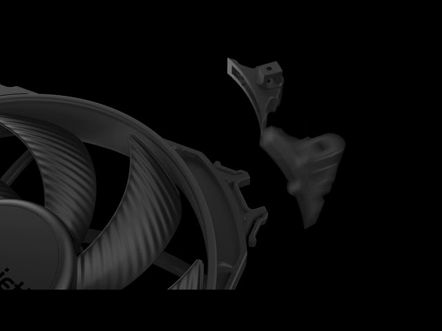 Ramka ma ten sam kształt - też zastosowano wylot powietrza w kształcie lejka oraz siedem specjalnie wyprofilowanych łopatek. Taka konstrukcja ma przekładać się na większy przepływ powietrza (do 97,41 CFM / 165,5 m3/h) i ciśnienie statyczne (do 3,64 mm H2O).