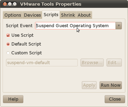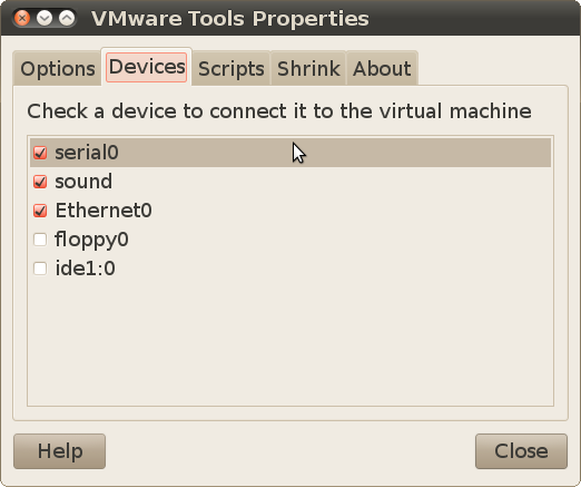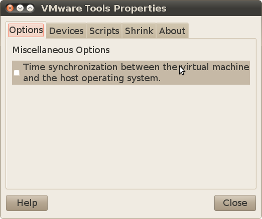 Mamy również wersję Open Source wspomnianych dodatków, tworzoną w ramach projektu Open Virtual Machine Tools - w Centrum Oprogramowanie Ubuntu jest to m.in. pakiet VMWare User Agent. Niestety po jego zainstalowaniu i wybraniu w menu odpowiedniej pozycji nic się nie dzieje. Z kolei sudo vmware-toolbox uruchomi dokładnie tę samą aplikację co w wersji "komercyjnej".