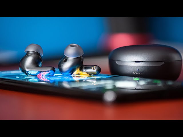 Akumulatory w obu słuchawkach mają pojemność 68 mAh, a do tego dochodzi jeszcze etui ładujące z ogniwem 390 mAh oraz funkcją bezprzewodowego ładowania w popularnym standardzie Qi. Co ciekawe etui ma funkcję dezynfekcji słuchawek za pomocą światła UV, przydatną nie tylko w obecnych czasach, ale po prostu zawsze.