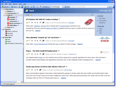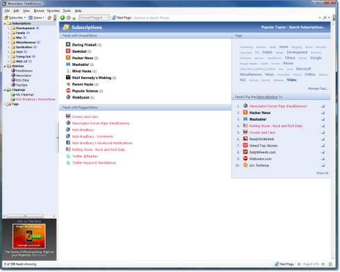 Aplikacja FeedDemon służy do odczytywania kanałów RSS i Atom. Dzięki niej możemy pobierać i segregować informacje przesyłane za pomocą tych popularnych interfejsów. Program wyposażono w wygodny i przejrzysty interfejs, który ułatwia poruszanie się wśród wielu wiadomości.