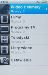 - Wideo (wideo z kamery, filmy, programy TV, teledyski, listy wideo, ustawienia)