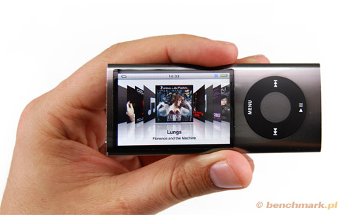 • iPoda Nano piątej generacji wyposażono w akcelerometr, który sprawia, że po zmianie orientacji urządzenia z pionowej na poziomą menu główne zmienia się w "Cover Flow", wyświetlając w atrakcyjny sposób okładki wszystkich zapisanych albumów. Okładki ułożone są w pas szeroki na cały ekran, a same grafiki mają perspektywę i swoje odbicie w wirtualnej tafli szkła. Przeszukiwać możemy je w bardzo prosty sposób za pomocą dotykowego kółka (ClickWheel), a w czasie poszukiwań okładki będą się w płynny sposób animowały. Również w czasie odtwarzania konkretnego utworu możemy uruchomić CoverFlow. Gdy tak uczynimy, wyświetli się okładka albumu, z którego pochodzi aktualnie odtwarzany utwór.