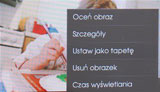 • Z podobnym interfejsem do czynienia mamy w czasie przeglądania zawartości katalogów ze zdjęciami. Możemy sprawić, aby grafiki wyświetlały się w postaci pokazu slajdów, możemy je powiększać, obracać, usuwać, ustawić jako tapetę, wyświetlić szczegóły oraz oczywiście przenieść obraz z ekraniku wbudowanego na zewnętrzny.