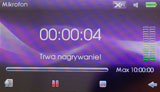 • Radio FM jest typowe. Można uruchomić automatyczne strojenie lub zrobić to manualnie, a następnie zapisać ulubioną stację w jednym z 32 wolnych miejsc. Korzystanie z niego jest proste i nie sprawia żadnych kłopotów. Podobną prostotą cechuje się dyktafon cyfrowy („Mikrofon”). Notatki głosowe można zapisywać w postaci pliku WAV.