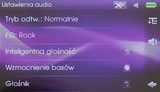 • Do własnej dyspozycji mamy także 8 fabrycznie zaprogramowanych ustawień korektora dźwięku, jedno ustawienie własne oraz możliwość całkowitego wyłączenia korektora. Ponadto osobno ustawić możemy wzmocnienie basów, inteligentną głośność, która dopasowuje się do utworu, a także sztuczne ograniczenie maksymalnego poziomu głośności do wybranego przez nas poziomu. Jest to o tyle przydatne, że nigdy nie zaskoczymy się potężnym "wybuchem" w uszach, gdy po dłuższym czasie nieużywania urządzenia zapomnimy na jakim poziomie głośności je pozostawiliśmy.