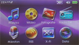 • Menu obsługuje się intuicyjnie. Ikonki należące do głównych opcji są duże i czytelne. Pod każdą widnieje też duży napis dot. funkcji, jaką oferuje. Pozostałe znaki graficzne służące do nawigacji rozmieszczone zostały w sposób przemyślany. Wybór elementu odbywa się poprzez dotknięcie odpowiedniego miejsca na ekranie, a przewijania w płaszczyźnie poziomej i pionowej dokonujemy przesuwając palec w lewo, prawo, górę lub w dół.