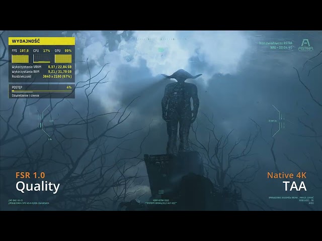 Zgadza się – tak jak głosi tytuł – w grze Returnal na PC twórcy zaimplementowali tylko starszą odmianę funkcji FSR – jej wersję 1.0. To bardzo zła wiadomość dla wszystkich, którzy nie posiadają karty z „RTX” w nazwie, ponieważ oznacza znaczne pogorszenie jakości obrazu z chwilą aktywowania tego upscalowania rozdzielczości. Posiadacze kart RTX 4000 również mogą nieco ponarzekać, bo gra nie wspiera DLSS 3 Frame Generation. Z drugiej strony, w takiego typu grze ta funkcja raczej nie cieszyłaby się dużym zainteresowaniem, ze względu na specyfikę jej działania (oraz i tak wysoką wydajność kart RTX 4000).