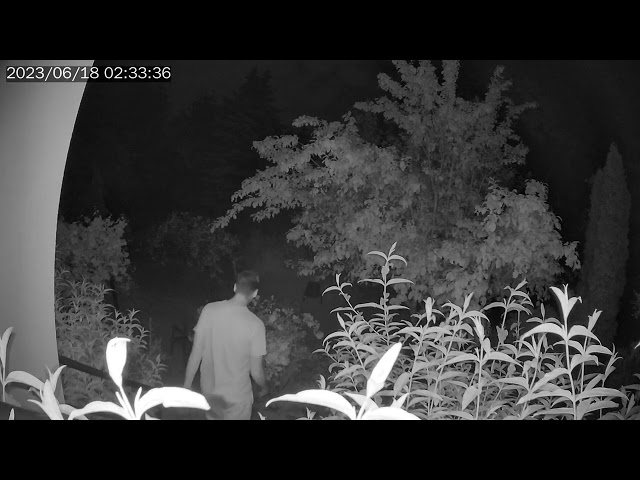 Nocne ujęcia, jak zresztą można było przypuszczać po testach Synology BC500, wypadają tu już niestety nieco gorzej. W niemal zupełnych ciemnościach, gdy nie ma w pobliżu żadnych dodatkowych źródeł światła, kamera wykrywa ruch w obszarze oddalonym od niej o 7-8 metrów. Z identyfikacją twarzy może być już jednak problem, szczególnie jeśli jakieś obiekty są bliżej w kadrze i siłą rzeczy są przez silniej oświetlone przez diody IR.