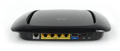 Bardzo nowoczesny design, elegancki, nie zajmuje wiele miejsca. | Porty: DSL, Ethernet (1-4), USB, zasilanie |