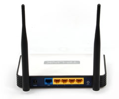 | Kompaktowy, ma odkręcane anteny, dobra jakość wykonania Przyciski: Reset, Wi-Fi Protected Setup Diody LED na przednim panelu: • Zasilanie, • Ethernet (1-4), • zabezpieczenia, • sieć bezprzewodowa,Internet | Porty: Ethernet (1-4), zasilanie Ma dwie zewnętrzne anteny. Obsługuje tryb N. Inne ciekawe cechy: • możliwość montażu na ścianie |