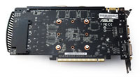 System chłodzący to dobrze znany DirectCU. Złożony z dużego aluminiowego bloku, dwóch grubych rur cieplnych, radiatora na sekcji zasilania oraz wentylatora o średnicy 75 mm świetnie daje sobie radę nawet w najbardziej trudnych warunkach, czyli wymagających grach. Na dodatek trzeba pochwalić kulturę pracy - jest naprawdę cichutko. Po gorących i hałasujących GeForce’ach GTX 470 i 480 można się cieszyć, że akceleratory NVIDII ze średniej półki są chłodne, a dzięki użyciu autorskich chłodzeń także ciche.