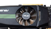 Od firmy ASUS otrzymaliśmy GTS-a 450 po tuningu. Wersja TOP odznaczała się podwyższonymi częstotliwościami taktowania do poziomu 925/1000 MHz (zamiast 783/900 MHz). Na pokładzie akceleratora zainstalowano 1 GB pamięci 128-bit GDDR5.